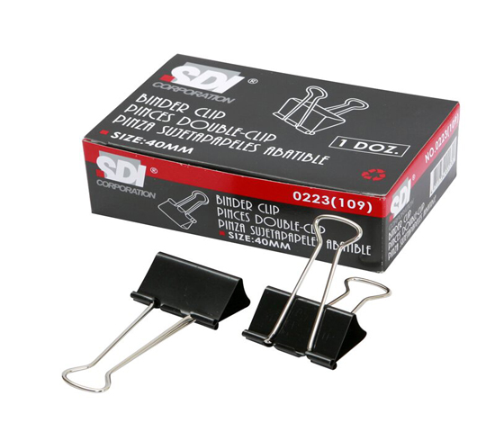 ตัวคลิ๊บผลิตจากเหล็กสปริงเหนียวชุมสีดำ ไม่ลอก ไม่เป็นสนิม แข็งแรง ทนทาน หนีบเอกสารได้แน่น ขาจับคลิ๊บยาว ไม่ต้องออกแรงมาก ในขนะหนีบเอกสาร ขนาด 1"